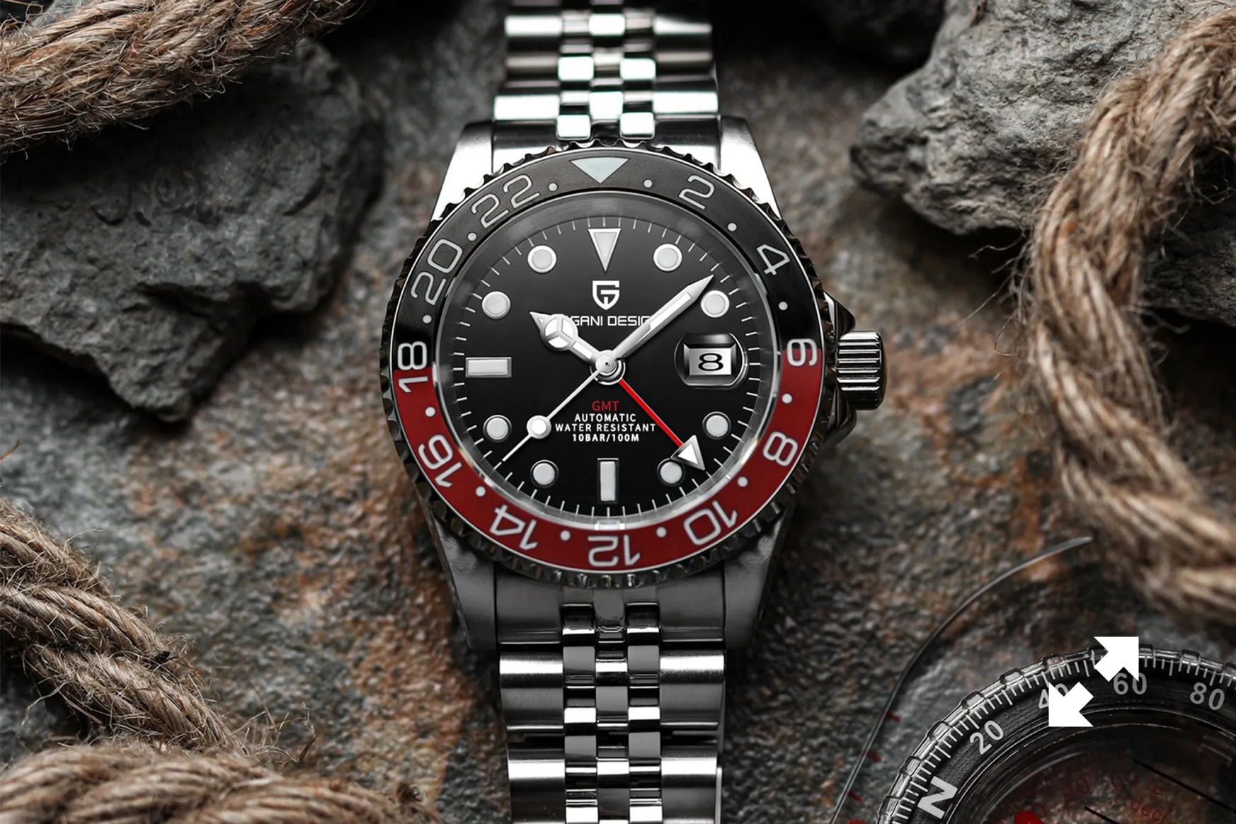 PAGANI DESIGN Orologi da uomo Automatico GMT Orologio da polso meccanico impermeabile in acciaio inossidabile per uomo Bracciale Jubilee Vetro zaffiro